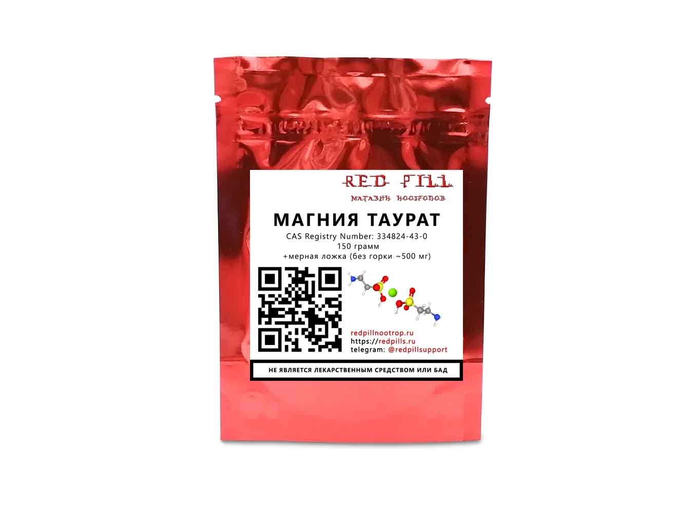 Порошок 150 грамм магния таурата с мерной ложечкой или капсулы.